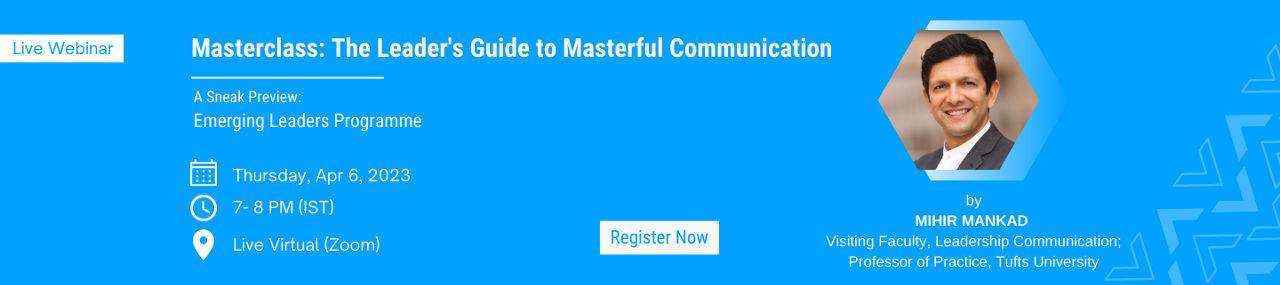 Embark on a journey towards mastery of communication as a key driver of leadership success in today's fast-paced business world. Join us for a Masterclass on The Leader's Guide to Masterful Communication, where Professor Mihir Mankad will lead you in exploring the art of effective communication, helping you master the right communication tactics to enhance your decision-making skills and become an influential leader.