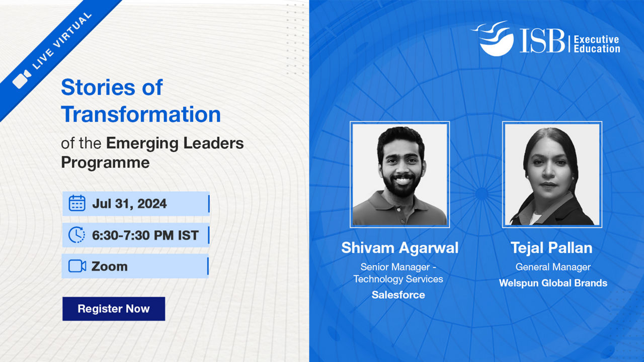 We invite you to join the webinar on Stories of Transformation of the ‘Emerging Leaders Programme' featuring its alumni from Salesforce and Welspun Global Brands.
