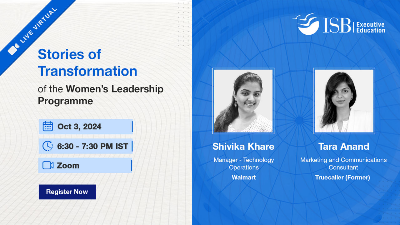 We invite you to join the webinar on Stories of Transformation of the Women’s Leadership Programme featuring its alumni from Walmart and Truecaller (Former).